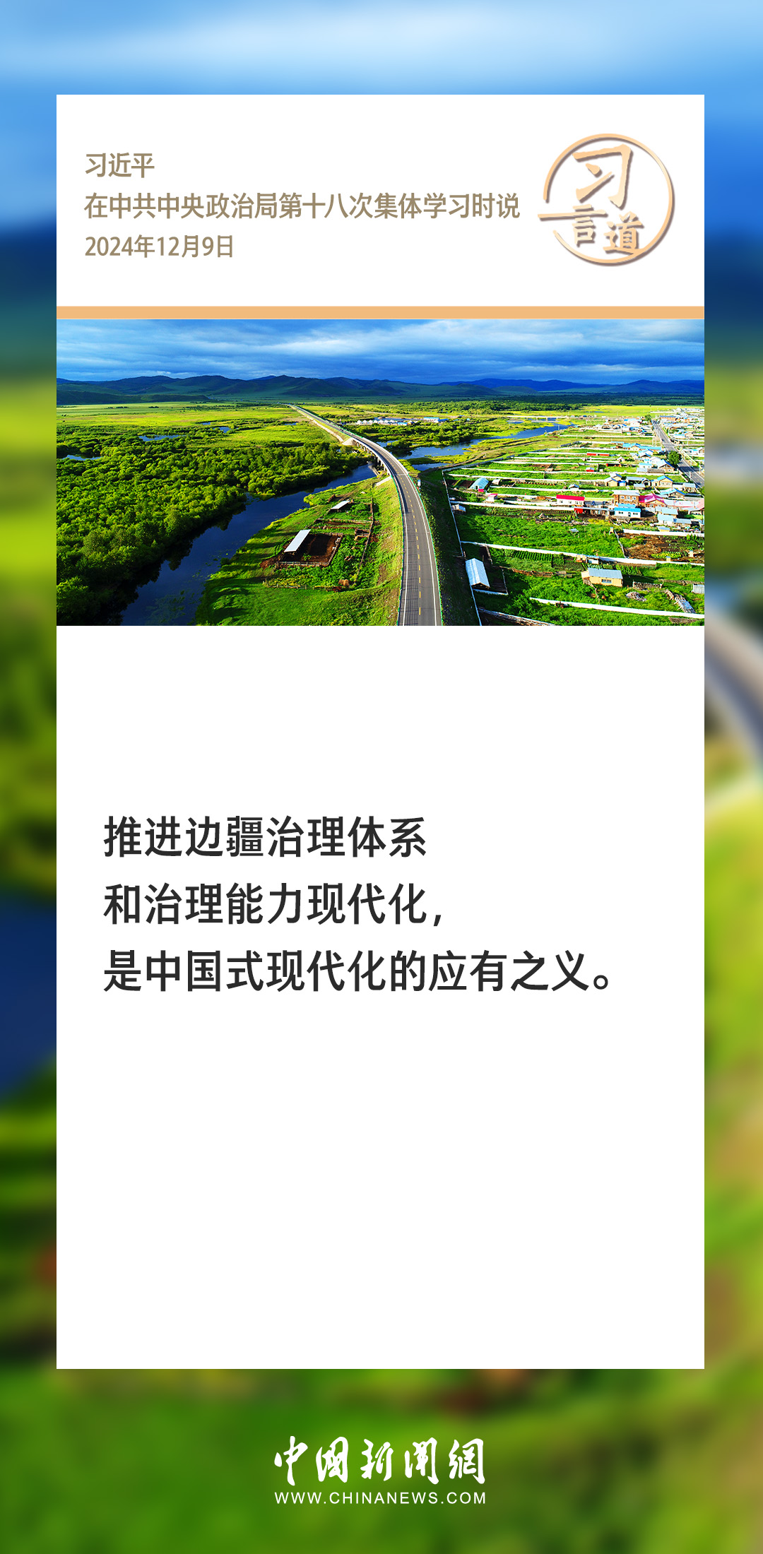 中共中央政治局12月9日就我國(guó)歷史上的邊疆治理進(jìn)行第十八次集體學(xué)習(xí)。中共中央總書(shū)記習(xí)近平在主持學(xué)習(xí)時(shí)強(qiáng)調(diào)——
