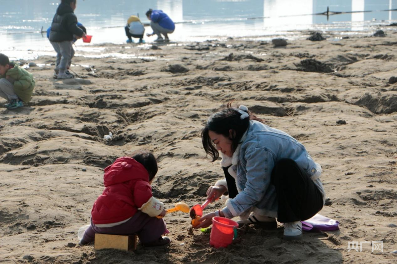 家長帶孩子在興隆湖沙灘上玩耍(央廣網(wǎng)發(fā) 天府新區(qū)融媒中心供圖)
