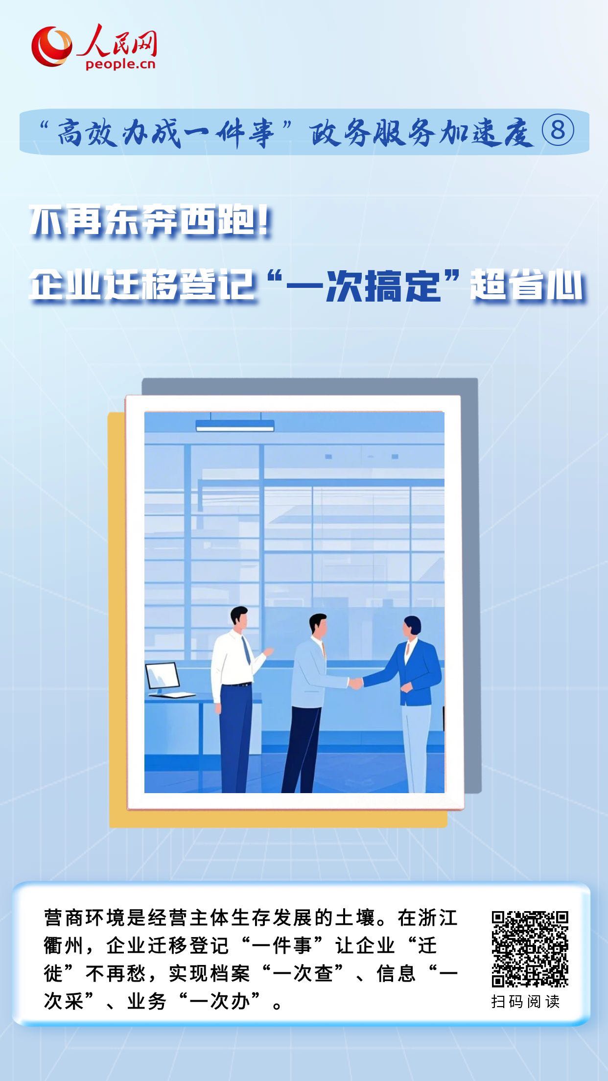 在浙江衢州,企業(yè)“遷徙”不再愁,通過(guò)建立線下協(xié)同、線上議題聯(lián)動(dòng)機(jī)制,將原先企業(yè)遷移涉及7個(gè)部門(mén)15個(gè)環(huán)節(jié),壓減為通過(guò)“1個(gè)平臺(tái)、1個(gè)環(huán)節(jié)”,實(shí)現(xiàn)檔案“一次查”、信息“一次采”、業(yè)務(wù)“一次辦”。