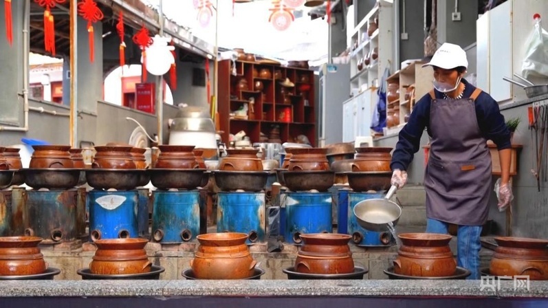 制作盬子雞的盬子,來(lái)自當(dāng)?shù)厥〖?jí)非物質(zhì)文化遺產(chǎn)代表性傳承人母先才的陶藝館。2014年,在政府的幫扶下,母先才依托傳統(tǒng)技藝開(kāi)設(shè)了陶藝館。現(xiàn)在,他不僅把原來(lái)的土窯改成了更加環(huán)保的電窯,還把工坊變?yōu)榧铺?、研學(xué)、餐飲為一體的陶藝館,受到游客歡迎。