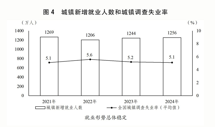 ——全國城鎮(zhèn)調(diào)查失業(yè)率5.5%左右,城鎮(zhèn)新增就業(yè)1200萬人以上。關(guān)于全國城鎮(zhèn)調(diào)查失業(yè)率,主要考慮:2025年重點人群就業(yè)壓力仍然較大,將城鎮(zhèn)調(diào)查失業(yè)率目標(biāo)定為5.5%左右,與2024年保持一致,體現(xiàn)了加大穩(wěn)就業(yè)力度的導(dǎo)向。關(guān)于城鎮(zhèn)新增就業(yè),主要考慮:2025年需在城鎮(zhèn)就業(yè)的新成長勞動力規(guī)模進(jìn)一步增加,就業(yè)總量與結(jié)構(gòu)性矛盾依然突出,1200萬人以上的預(yù)期目標(biāo)與2024年目標(biāo)保持一致,能夠更好體現(xiàn)穩(wěn)就業(yè)惠民生的力度和決心;同時,隨著經(jīng)濟(jì)持續(xù)回升向好,就業(yè)政策持續(xù)發(fā)力,實現(xiàn)這一目標(biāo)是有支撐的。