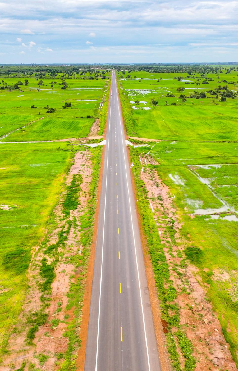 這是2024年7月14日在柬埔寨特本克蒙省拍攝的71C號(hào)國(guó)家公路(無(wú)人機(jī)照片)。新華社發(fā)(尼多拉攝)