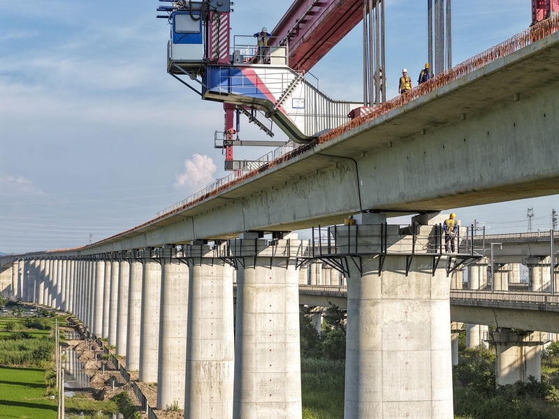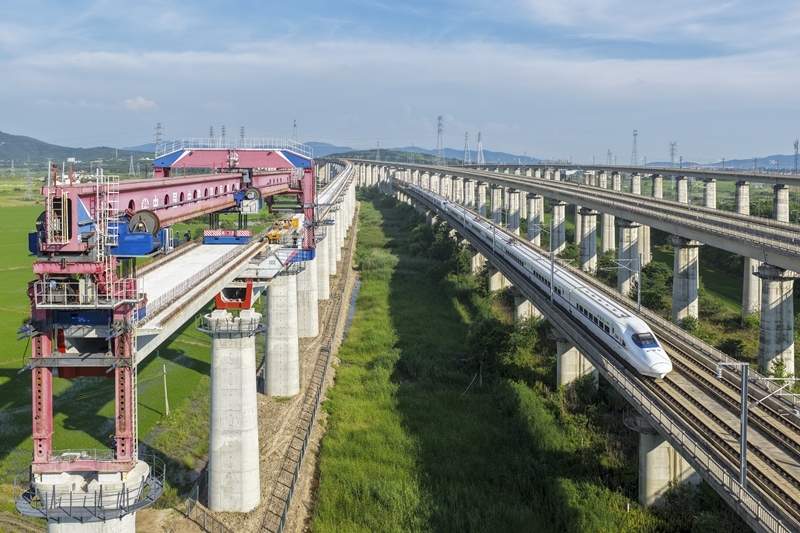 時(shí)下,中鐵四局巢馬城際鐵路架梁施工現(xiàn)場(chǎng)一派繁忙,施工人員奮戰(zhàn)在建設(shè)一線,確保重點(diǎn)鐵路工程建設(shè)穩(wěn)步推進(jìn)。巢馬城際鐵路是國(guó)家“八縱八橫”高鐵網(wǎng)滬漢蓉快速通道合肥至上海間的重要組成部分,設(shè)計(jì)時(shí)速350公里。