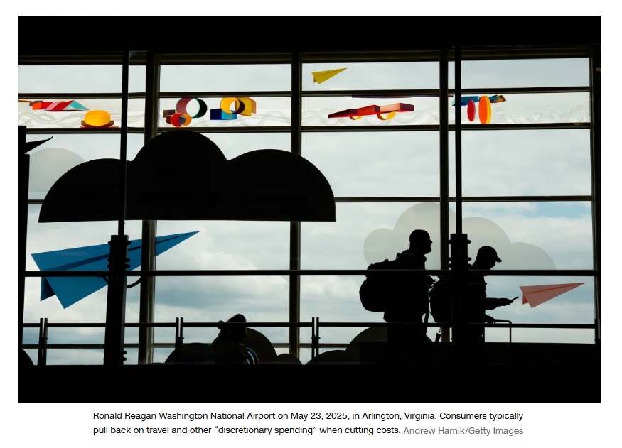 對于像威爾伯恩這樣的家庭來說,春季的瘋狂消費是對抗不確定性的“豪賭”,可能需要多年的精打細(xì)算來償還債務(wù)。如今背負(fù)新債的美國人正縮減消費,尤其是餐飲、旅行等非必需支出。美國金融服務(wù)網(wǎng)站銀率網(wǎng)(Bankrate)的調(diào)查顯示,54%的美國成年人計劃減少此類消費,高于去年的49%。商務(wù)部數(shù)據(jù)也印證了這一情況,五月份餐館和酒吧的零售支出下降了0.9%,這是自二月以來的首次月度下降,也是自2023年2月以來的最大降幅。