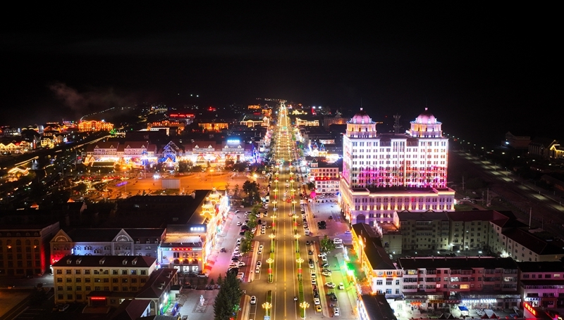 7月4日拍攝的內(nèi)蒙古興安盟阿爾山市夜景(無人機(jī)照片)。