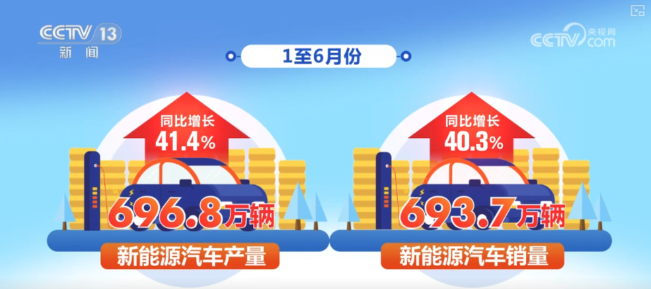 2025年以來,我國實施更加積極有為的宏觀政策,經(jīng)濟運行總體平穩(wěn)。1至6月份,汽車市場延續(xù)良好態(tài)勢,產(chǎn)銷量均超過1500萬輛,同比均實現(xiàn)10%以上較高增長。其中,新能源汽車產(chǎn)銷量分別完成696.8萬輛和693.7萬輛,同比分別增長41.4%和40.3%,新能源汽車新車銷量達(dá)到汽車新車總銷量的44.3%。