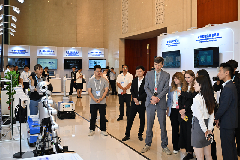 7月11日,參會嘉賓在2025上合組織數(shù)字經(jīng)濟論壇互動體驗區(qū)參觀。