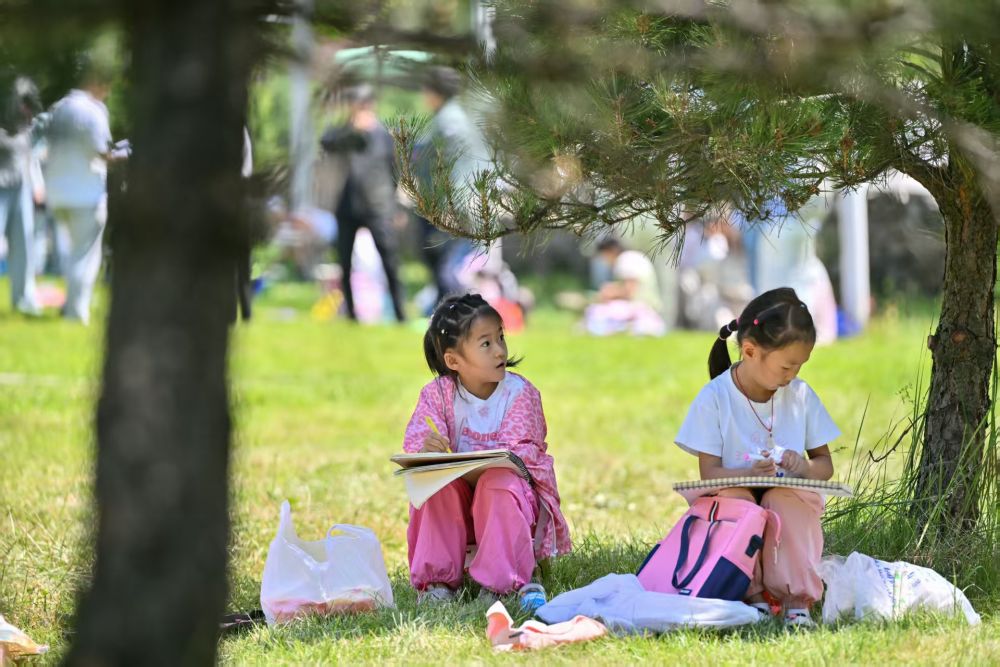 7月22日,兩名小學(xué)生在青海省大通縣邊麻溝花海景區(qū)內(nèi)參加暑期美術(shù)寫(xiě)生研學(xué)活動(dòng)。新華社記者 孫瑞博 攝