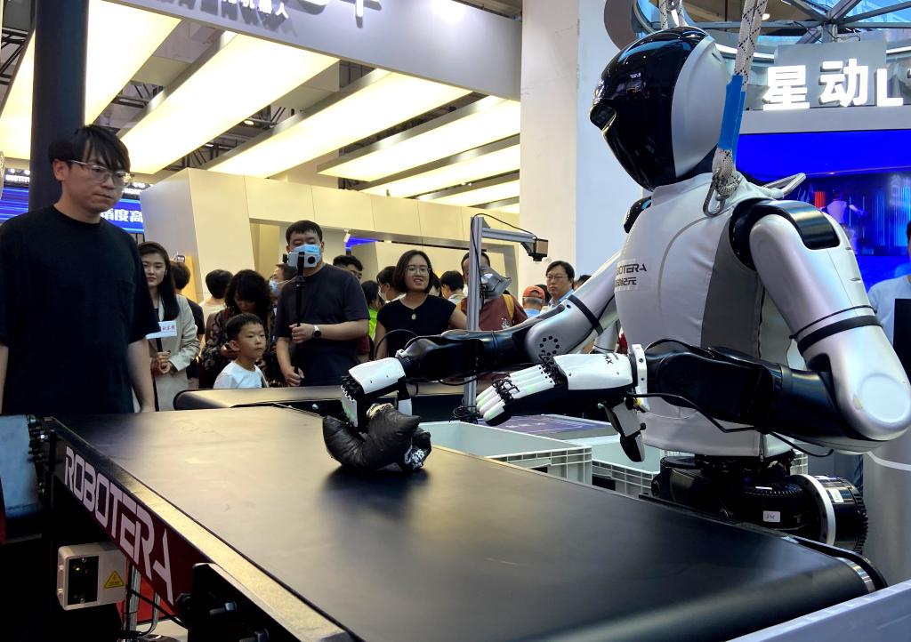 圖為2025世界機(jī)器人大會(huì)上的一款機(jī)器人正在展示物品分揀能力。新華社記者魏夢(mèng)佳攝