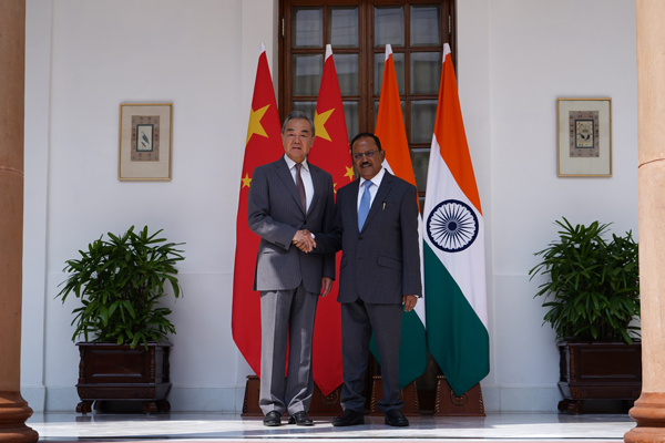 王毅強(qiáng)調(diào),歷史和現(xiàn)實一再證明,中印關(guān)系健康穩(wěn)定發(fā)展符合兩國人民根本利益,也是廣大發(fā)展中國家的共同期待。雙方應(yīng)按照兩國領(lǐng)導(dǎo)人戰(zhàn)略指引,秉持雙軌并進(jìn)、相互促進(jìn)、良性循環(huán)的思路看待和處理雙邊關(guān)系和邊界問題,通過對話溝通增進(jìn)互信,擴(kuò)大交流合作,共同推動在邊境管控、劃界談判、跨境交流等方面匯聚共識、明確方向、設(shè)定目標(biāo),妥善解決具體問題,取得更多積極進(jìn)展,為兩國關(guān)系改善發(fā)展不斷營造有利條件。