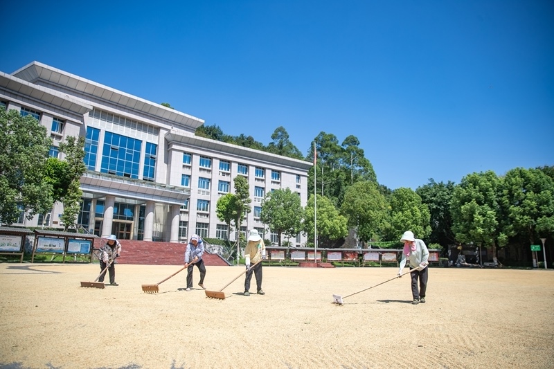 8月20日,人們在重慶市永川區(qū)紅爐鎮(zhèn)政府廣場上晾曬糧食。