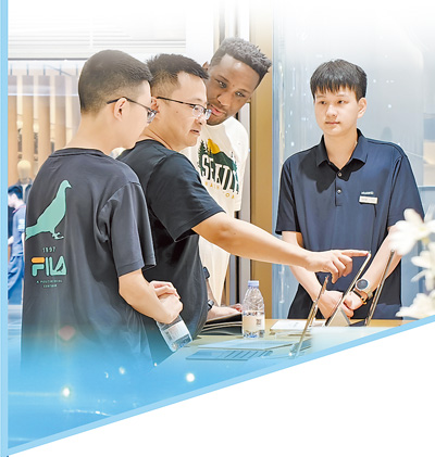 “入境游客喜歡選購耳機、AI眼鏡以及半導體手持制冷風扇。今年歐洲天氣比較炎熱,有一名外國客人一次性買了兩箱半導體手持制冷風扇?!卑桶厣畴娮赢a品生活館負責人盧華介紹,與去年相比,今年外國客商增加20%,高峰時段店里有30%的客戶是外國人。