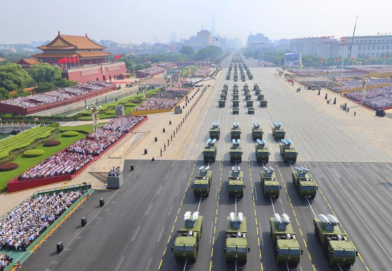 9月3日,紀念中國人民抗日戰(zhàn)爭暨世界反法西斯戰(zhàn)爭勝利80周年大會在北京隆重舉行。這是火箭軍方隊接受檢閱。