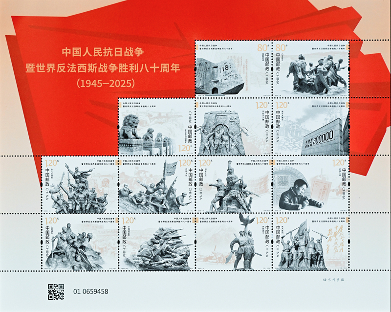 9月3日,中國(guó)郵政發(fā)行《中國(guó)人民抗日戰(zhàn)爭(zhēng)暨世界反法西斯戰(zhàn)爭(zhēng)勝利八十周年》紀(jì)念郵票1套13枚、小型張1枚,全套面值為20.8元。