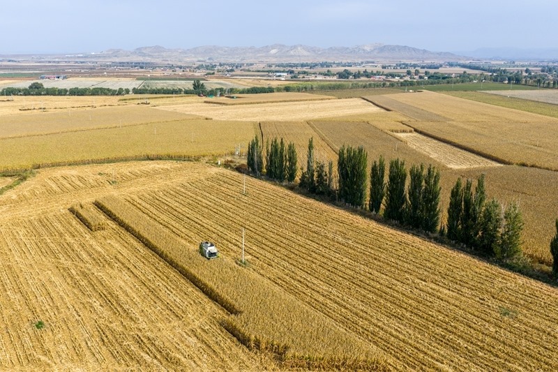 金秋時(shí)節(jié),內(nèi)蒙古巴彥淖爾市烏拉特前旗的玉米迎來豐收,當(dāng)?shù)貜V泛采用機(jī)械化收割與半自動(dòng)化烘干技術(shù),保障秋收效率。