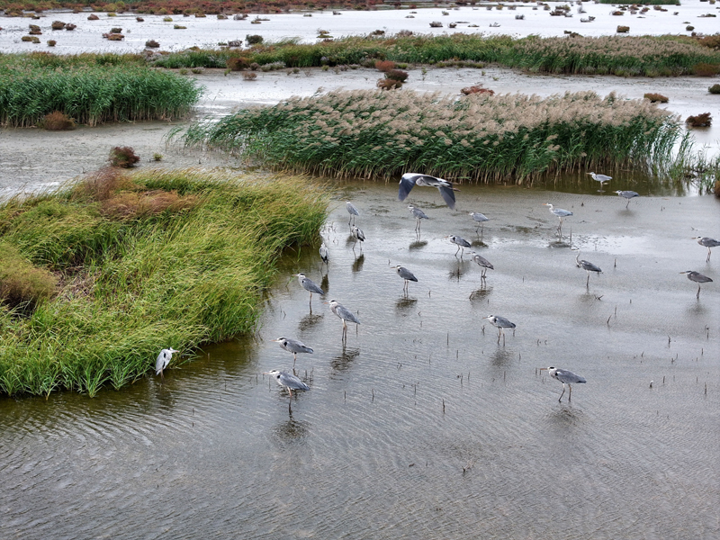 10月18日,一群候鳥在江蘇省連云港市海州灣國(guó)家級(jí)海洋公園濕地棲息、覓食(無人機(jī)照片)。