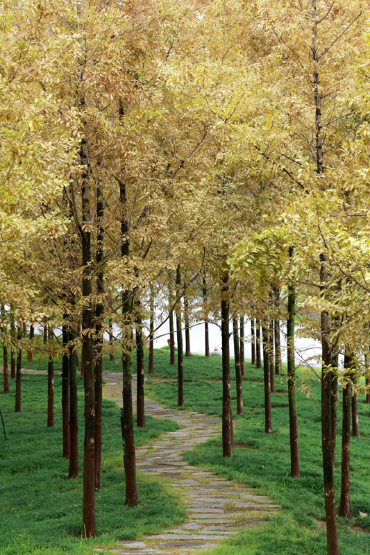 10月17日,游人在南京明孝陵景區(qū)石象路賞景游玩(無人機(jī)照片)。