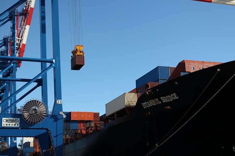 10月19日,在波蘭北部格但斯克港,從中國(guó)寧波舟山港出發(fā)的中歐北極快航航線首艘貨船進(jìn)行裝卸工作。