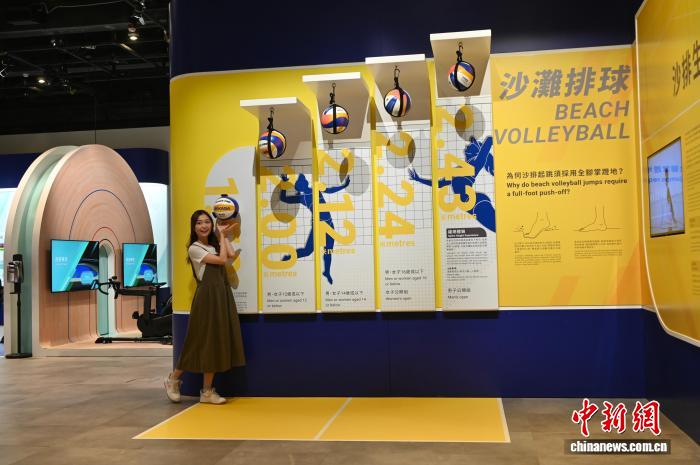 10月23日,香港科學(xué)館舉辦“國家發(fā)展成就系列──臻至完美:運(yùn)動(dòng)與科學(xué)的交匯”展覽,展示全國運(yùn)動(dòng)會的歷史及第十五屆全國運(yùn)動(dòng)會香港賽區(qū)的賽事項(xiàng)目。圖為一名女士體驗(yàn)沙灘排球項(xiàng)目,了解運(yùn)動(dòng)員的跳躍高度。 中新網(wǎng)記者 李志華 攝