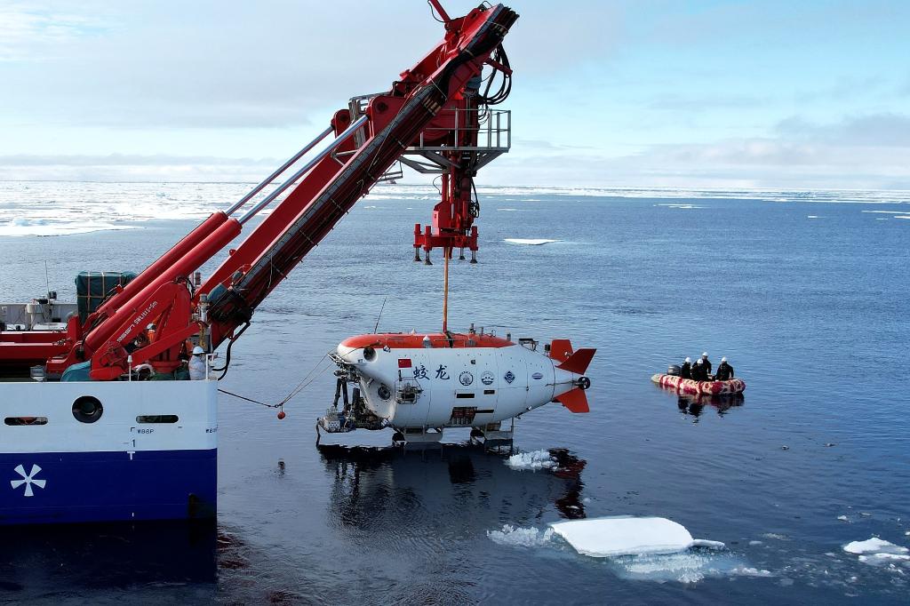 搭載著“奮斗者”號載人深潛科考隊(duì)的“探索三號”于今年7月22日從三亞出發(fā),會同“蛟龍”號載人深潛團(tuán)隊(duì)赴北冰洋海域執(zhí)行深潛任務(wù)。其間,科考隊(duì)在北冰洋作業(yè)56天,進(jìn)行了一系列科學(xué)考察和試驗(yàn)。在海冰覆蓋率大于80%的北冰洋中央海盆,科考隊(duì)進(jìn)行了國際上首次加克洋中脊的載人深潛科考,最大下潛深度達(dá)5277米。