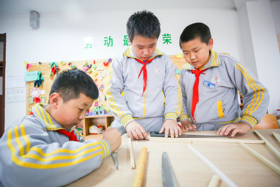 “今日課程學(xué)習(xí)的是水果拼盤和可樂雞翅?!备S勺鏟翻動(dòng),添上各種調(diào)料,一個(gè)個(gè)身著圍裙的學(xué)生們正在老師的指導(dǎo)下忙的不亦樂乎。從擇菜、烹飪到清洗廚具,一個(gè)個(gè)學(xué)生儼然已經(jīng)成為“小廚師”。從三年級(jí)開始,學(xué)校還開展了陶藝、木工、科技制作等活動(dòng),找準(zhǔn)學(xué)生的興趣點(diǎn),學(xué)校有趣的勞動(dòng)技能活動(dòng)吸引了學(xué)生的眼球。