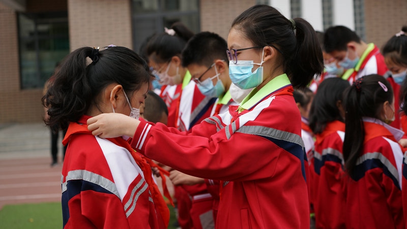新城區(qū)北垣小學(xué)舉行一年級(jí)新生分批入隊(duì)儀式。新隊(duì)員們戴上紅領(lǐng)巾,走在陽光下,熠熠生輝。學(xué)校利用好“六一”這個(gè)重要時(shí)間節(jié)點(diǎn),開展入隊(duì)儀式、“紅領(lǐng)巾獎(jiǎng)?wù)隆鳖C章儀式等,用好儀式教育,構(gòu)建階梯式成長激勵(lì)體系,不斷增強(qiáng)少先隊(duì)員的光榮感。