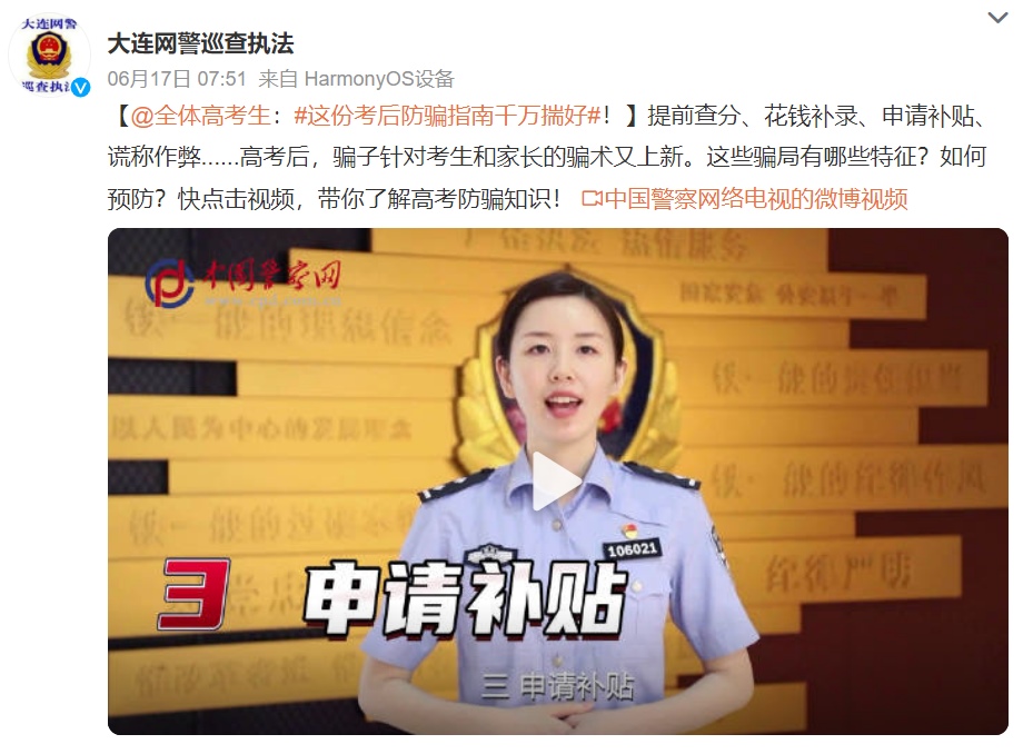 警方提醒廣大考生及考生家長,不管詐騙手段如何演變,萬變不離其宗的“核心需求”就是“要錢”,因此在收到此類短信或電話時,應第一時間與學校、教育部門核實,在無法確認信息真實性的情況下,可撥打96110咨詢或舉報。此外,不要抱有僥幸心理,任何打著有“內部名額”或“內部渠道”的旗號要求繳納費用的通知均為詐騙。