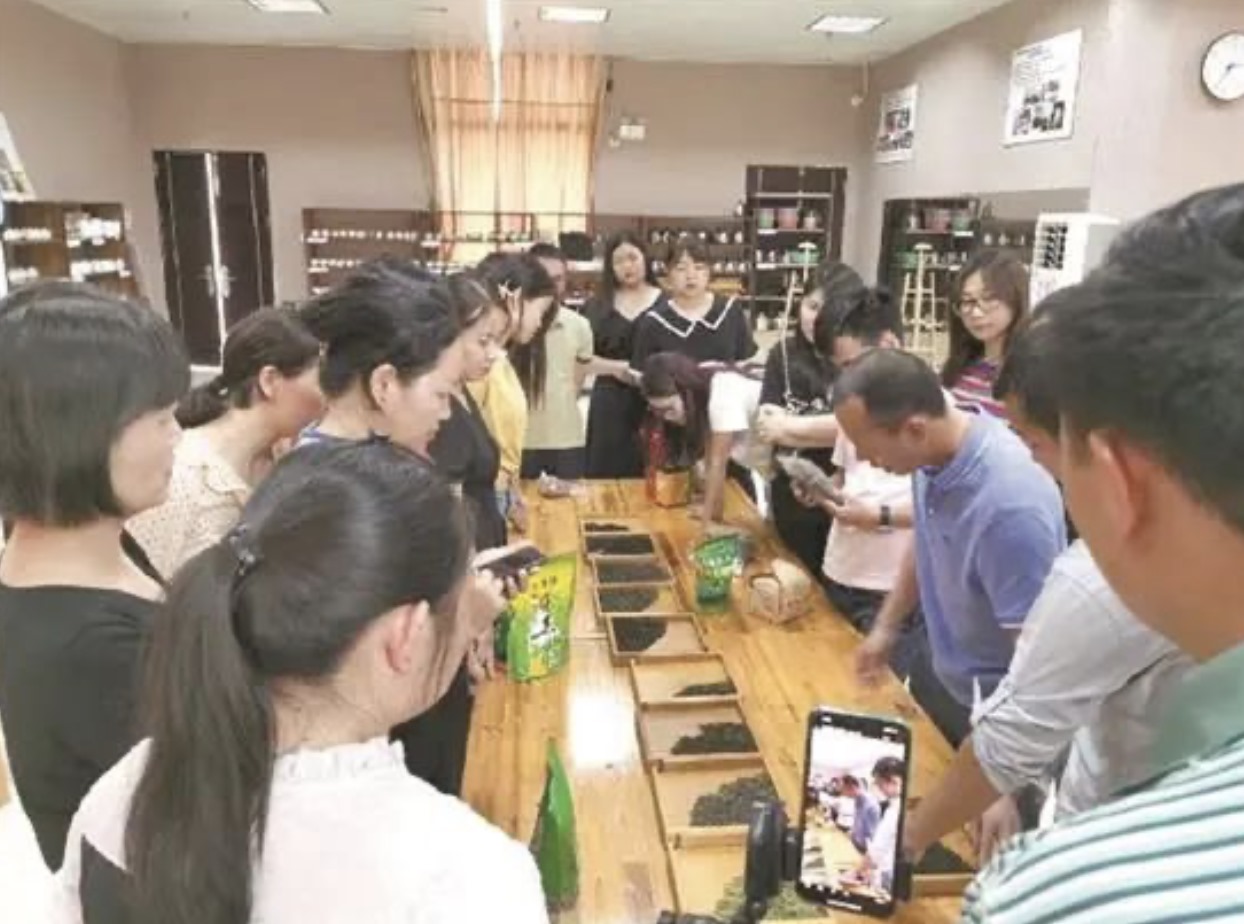 廣東科貿(mào)職院高職擴(kuò)招茶藝班學(xué)生在學(xué)習(xí)識別茶葉