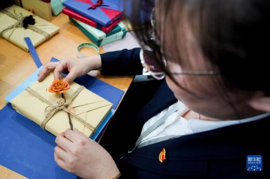 4月12日,工作人員精心制作“換書大集”上的新書盲盒。