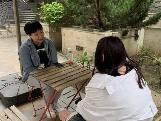 李涵與一位未成年被害人談心,為其做心理疏導。受訪者供圖