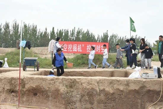 在山西夏縣師村遺址學生考古實習期間,基地把每周六下午定為公眾考古開放日。每次開放日前,師生們都要進行充分準備:明確人員工作分配、規(guī)劃參觀路線、制作調查問卷、布置科普展板、設計研發(fā)文創(chuàng)產(chǎn)品,并且還要根據(jù)不同參觀人群撰寫相應的講解詞大綱。