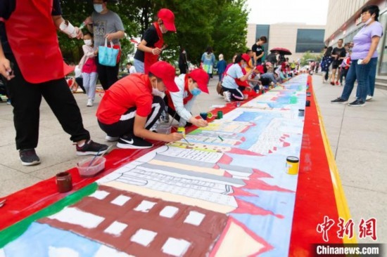 “六一”兒童節(jié)系列活動(dòng)期間,天津開(kāi)展少年兒童百米長(zhǎng)卷繪制活動(dòng)。王在御 攝