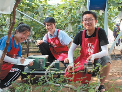 人才培養(yǎng)在遼寧省營口市鲅魚圈區(qū)葡萄科技小院,沈陽農(nóng)業(yè)大學(xué)師生在田間進(jìn)行指標(biāo)測(cè)定。邢若男攝(人民視覺)