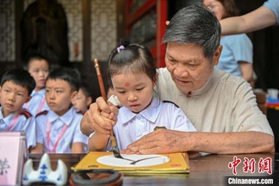 8月28日,廣州市越秀區(qū)朝天小學(xué)港澳子弟班的新生舉行開筆禮。陳驥旻攝