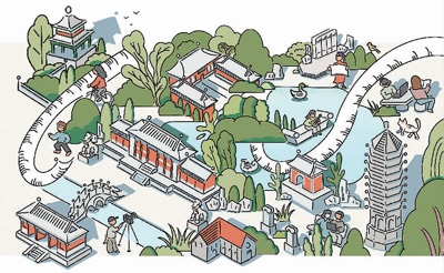 周 玨繪周玨畢業(yè)于北京大學考古文博學院,是一名職業(yè)插畫師,曾經(jīng)參加過導師張劍葳副教授組織的燕園文物數(shù)字化工作坊。她用畫作描述了師生參與燕南園歷史地段景觀保護與展示項目的情景?!把鄨@曾是我學習生活過的地方,又是值得研究與保護的文化遺產(chǎn)。燕園不僅以塔、湖聞名,還有西校門、辦公樓、紅五樓、校景亭、花神廟和燕南園?!?/p>