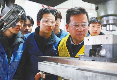 湖南省永州市新田縣產業(yè)開發(fā)區(qū),新田縣職業(yè)中等專業(yè)學校學生在學習機床操作技術。劉貴雄攝(新華社發(fā))