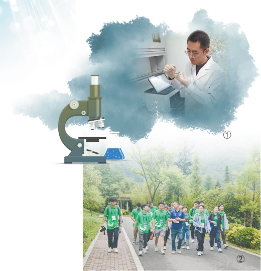 圖①:北京大學(xué)基礎(chǔ)醫(yī)學(xué)院教師在基礎(chǔ)醫(yī)學(xué)博雅學(xué)堂班講授測序儀上機(jī)流程。楊恩策攝 圖②:浙江大學(xué)生命科學(xué)學(xué)院強(qiáng)基計(jì)劃本科生到中國大熊貓保護(hù)研究中心開展社會(huì)實(shí)踐。浙江大學(xué)融媒體中心供圖
