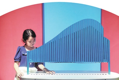 科普教育山東省濰坊市高密市科技館內(nèi),小朋友在體驗音樂科普設(shè)備。李海濤攝(新華社發(fā))