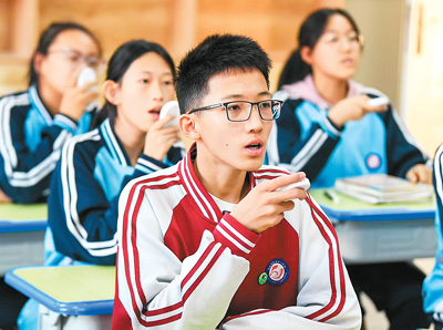 昆都侖區(qū)一所中學(xué)的學(xué)生使用英語(yǔ)聽(tīng)說(shuō)學(xué)習(xí)平臺(tái)進(jìn)行練習(xí)。