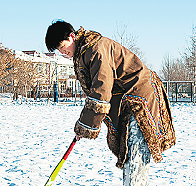 寒假期間,每當(dāng)夕陽的余暉染紅了大地,達(dá)斡爾族人迎新春最傳統(tǒng)的運(yùn)動(dòng)項(xiàng)目——打火球就要拉開序幕。打火球的比賽規(guī)則簡(jiǎn)單而有趣,通常選擇平坦的草地或村中開闊的街道作為場(chǎng)地,兩端各設(shè)一個(gè)球門,兩隊(duì)人數(shù)相等即可,以進(jìn)球多者為勝。盡管開始時(shí)我屢屢失誤,但在長(zhǎng)輩們的鼓勵(lì)和指導(dǎo)下,我逐漸掌握了技巧,每一次成功擊打都讓我興奮不已。