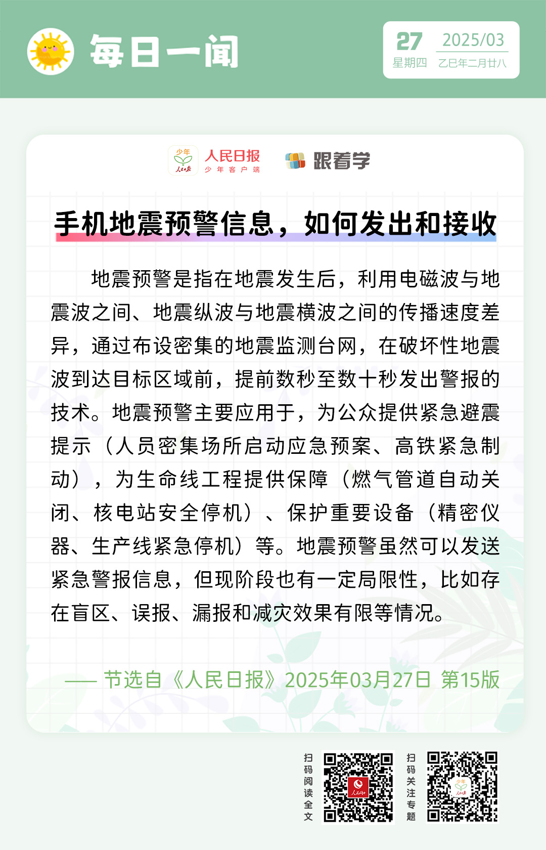 每日一聞丨手機(jī)地震預(yù)警信息,如何發(fā)出和接收