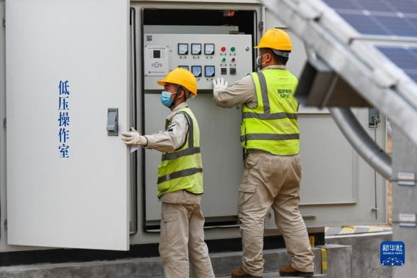 4月20日,工作人員在達拉特光伏發(fā)電應用領跑基地巡檢。新華社記者 王澤聰 攝