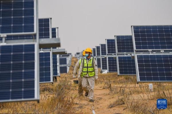 一匹占地130多萬平方米的沙漠“駿馬”橫臥在內蒙古自治區(qū)庫布其沙漠之中,這是位于達拉特光伏發(fā)電應用領跑基地中、由近20萬塊光伏板組成的“駿馬電站”。該電站采用“林光互補”模式,板上發(fā)電、板下種植,在開發(fā)利用庫布其沙漠豐富太陽能資源的同時,推動沙漠生態(tài)治理。