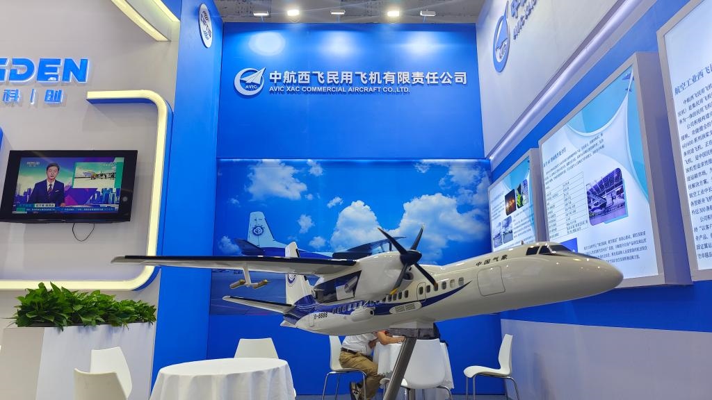 服貿(mào)會上的新舟60氣象機模型展示(中國氣象服務協(xié)會供圖)