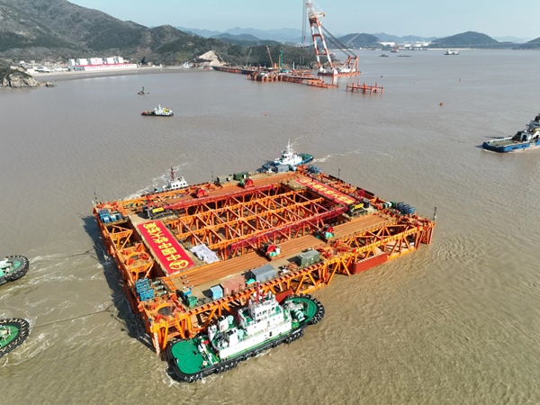 人民網(wǎng)北京2月17日電 (記者王連香)據(jù)中國鐵路上海局集團有限公司消息,2月16日13時30分,在寧波至舟山鐵路(以下簡稱甬舟鐵路)西堠門公鐵兩用大橋建設現(xiàn)場,5號墩自浮式鉆孔平臺,經(jīng)過8個小時的海上浮運,準確到達5號主塔墩墩址處,標志著世界最大跨度公鐵兩用大橋和世界最寬跨海大橋主塔墩基礎建設拉開序幕。