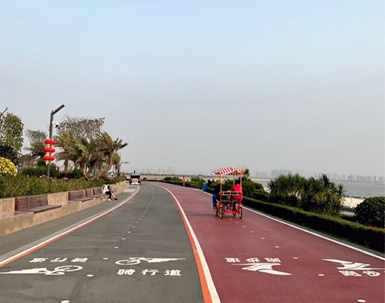 人民網(wǎng)東莞2月22日電 (記者趙雯 薛艷艷)濱海驛站坐落于廣東省東莞市濱海灣新區(qū),是東莞濱海長廊首個(gè)建成的重要節(jié)點(diǎn),緊靠海岸線,南臨前海,隔海眺望南沙自貿(mào)區(qū)、中山翠亨新區(qū)。立于驛臺前,海風(fēng)習(xí)習(xí)拂來,海天一線,日落降臨,浮光躍金。濱海驛站周邊建有廣場平臺、自行車道、沿海步道和園林綠化。濱海灣新區(qū)未來規(guī)劃建設(shè)一條長約40余公里的濱海長廊,以“運(yùn)動廊+人文鏈+活力岸”為建設(shè)目標(biāo),打造生態(tài)海堤,不僅為游客提供親水體驗(yàn),同時(shí)也為鳥類、兩棲類動物提供生境及遷徙通廊。