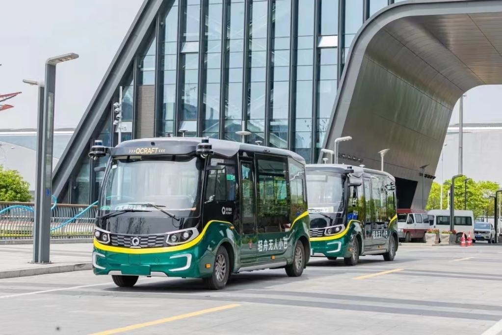 純電無人駕駛公交小巴穿梭在蘇州高鐵新城。(蘇州高鐵新城管委會(huì)供圖)