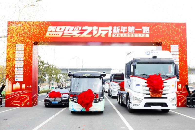 蘇州開展“智駕之城新年第一跑”,多款無人駕駛車輛同時(shí)上路。(蘇州高鐵新城管委會(huì)供圖)