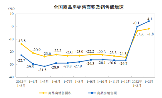 1—3月份,商品房銷售面積29946萬(wàn)平方米,同比下降1.8%,其中住宅銷售面積增長(zhǎng)1.4%。商品房銷售額30545億元,增長(zhǎng)4.1%,其中住宅銷售額增長(zhǎng)7.1%。