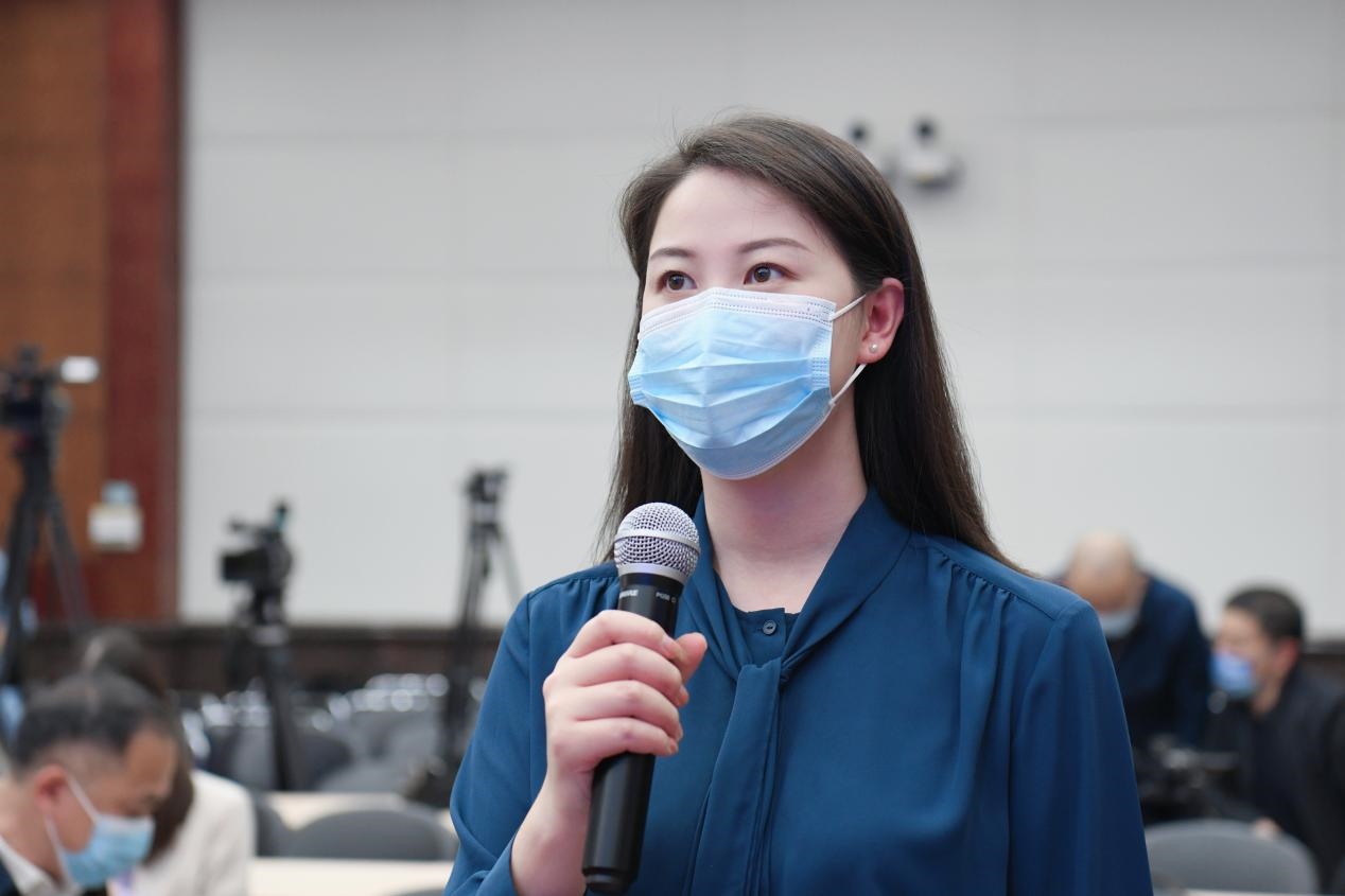 人民網(wǎng)記者任妍在2023年一季度財(cái)政收支情況新聞發(fā)布會(huì)上提問(wèn)。中國(guó)財(cái)經(jīng)報(bào)余波 攝
